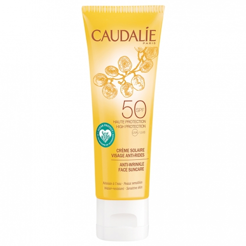 La Crema Solar Facial Antiarrugas SPF50 proporciona una protección frente a UVA/UVB máxima para que tu piel luzca un bronceado natural, luminoso y duradero y a la vez preserve su juventud. Enriquecida con agua de uva bio, su textura de crema, ligera y no pegajosa, hidrata y calma las pieles sensibles.